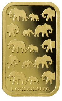 Přední strana slitku označuje výrobce, čistou váhu v uncích, ryzost, identifikační číslo a logo společnosti Rand Refinery. Zadní strana slitku zachycuje opakující se motiv procházejících slonů, matka s mládětem. Motiv doplňuje nápis "LOXODONTA".